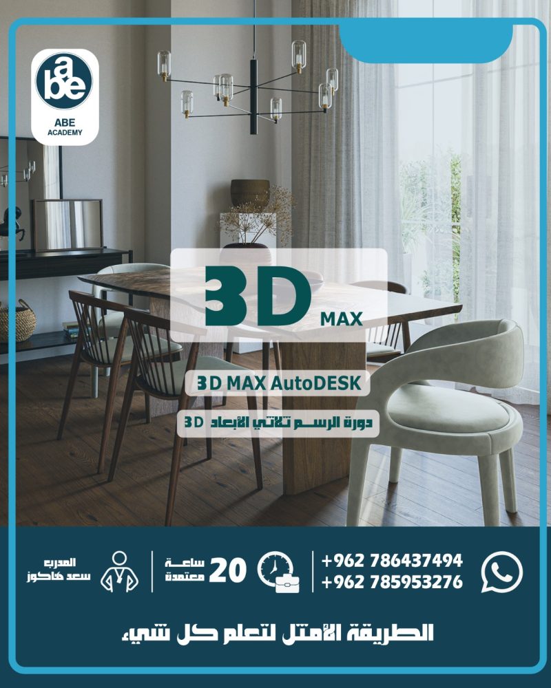 صممت دورة3Ds MAX لتمكين المشاركين من استخدام برنامج 3Ds MAX الخاص بإعداد النماذج والتصاميم ثلاثية الأبعاد، لتجسيد التصاميم، وتطوير الألعاب، والرسوم المتحركة بشكل مرئي. سيتمكّن المشاركون خلال هذه الدورة من إنشاء نموذج يشمل أدق التفاصيل وأكثر النماذج تعقيدا ليحقق رؤيتهم بجودة عالية، وذلك من خلال استخدام أدوات عديدة الوظائف إلا أنها سهلة الاستخدام، حيث أن دقة وسهولة هذا البرنامج تساعد أيضا على تصميم النماذج المعمارية، ويمكن استخدامه في العديد من المجالات، حيث يمكن استخدامه أيضا لمحاكاة السيناريوهات الفيزيائية وديناميكيات الحركة للسوائل والغازات والمواد الصلبة، كما سيتمكّن المشارك أيضًا من تهيئة لقطات كاميرا شبيهة بالواقع، مما يضيف مزيدًا من العمق إلى عمله، ويتميز هذا البرنامج بالدقة، حيث تتاح للمشارك إمكانية تحريك الكائنات في اتجاهات مختلفة واستخدام أشكال الشبكة والسطح وذلك بالاعتماد على المراجع الهندسية، كما يتيح هذا البرنامج خيار استخدام نماذج جاهزة من شأنها تسريع إنجاز العمل، إذ لديه واجهة برمجة تطبيقات (API) مفتوحة للمساعدة على دمج التطبيقات الخارجية .